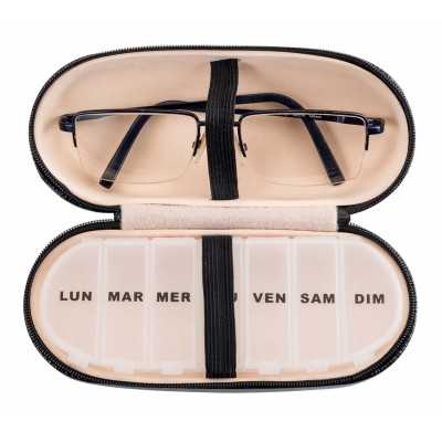 L’étui pour lunettes avec son compartiment qui dissimule un pilulier va devenir le compagnon indispensable qui saura se faire oublier.